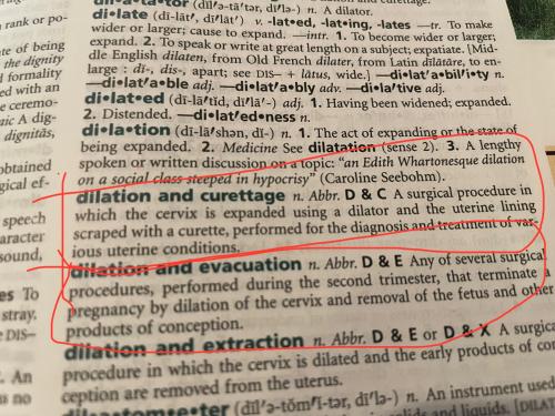 I had one fool on Twitter. Tell me that D&C’s are abortion so I looked at my dictionary my American Heritage dictionary from God knows what year, but when definitions meant something. I can’t wait to see her response.