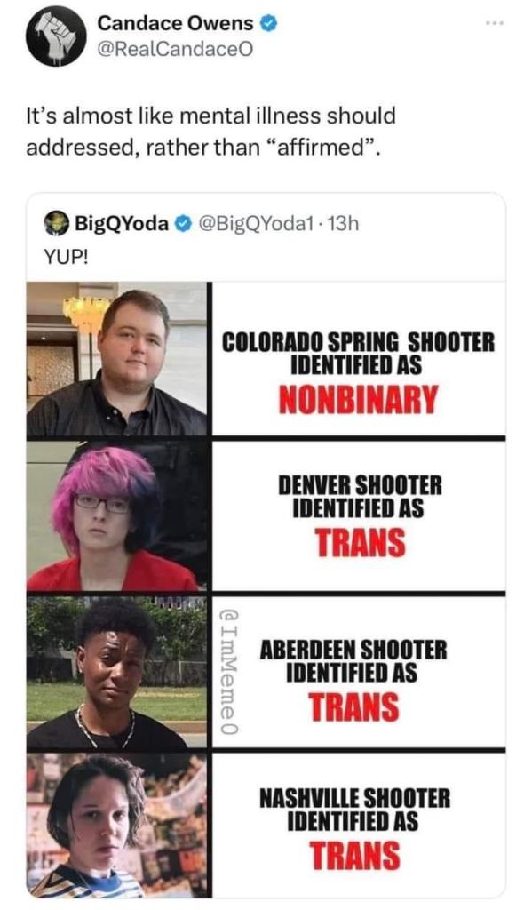 Isn't it outrageous that people are being censored and even attacked for saying this. We're not attacking the "trans community" we're just wondering what the hell is going on!! I speak from personal experience. A great percentage of SI patients I see in the ER are Trans.